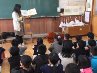 もみじ読書週間です。16日は朝の読書タイムに先生による読み聞かせをしました。