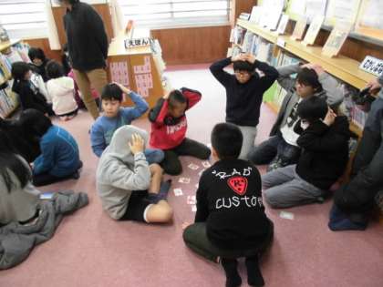 中間休みは図書館ボランティアさんによるカルタ大会でした。