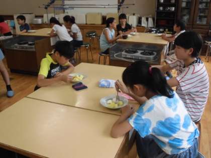 5年生はゆで卵とゆでいもの調理実習をしました。