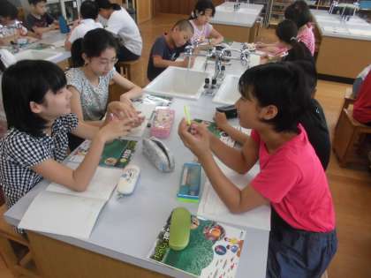 理科「生物どうしの関わり」では,生物は食べ物を通してどのように関わっているのか,身近な生き物や給食の献立を例にして,グループで話し合って考えました。