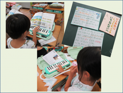 子どもたちが待ちに待った鍵盤ハーモニカの学習をはじめました。子どもたちは数日前から鍵盤ハーモニカを持ってきて,休み時間に一生懸命吹く練習をしていました。音楽の時間,西大路小学校に「けんばんハーモニカくん」から手紙が届きました。子どもたちは大興奮です。けんばんハーモニカくんからは,楽器として大切に扱ってほしいこと,なかよしになってほしいこと,が伝えられました。子どもたちは手紙の文にひとつひとつに「はい!」と返事をしていました。これから,たくさん練習をして「けんばんハーモニカくん」となかよしになります。