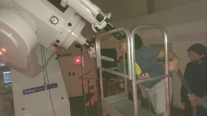 レクリエーション大会後は屋上に移動して天体観測をしました。ちょうど満月で天気もよく月や星がはっきり見えました。貴重な経験となりました。