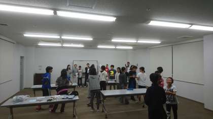 夕食後はお待ちかねレクリエーション大会、総合司会の進行のもと、係ごとに出し物をして、盛り上がりました。歌あり、謎解きあり、ゲームあり、様々な工夫と演出がありました。楽しい時間はあっという間に終わってしまいました。