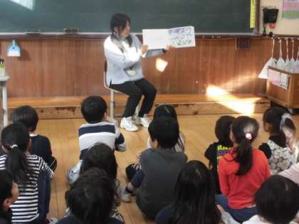 もみじ読書週間です。11月29日の朝の読書タイムに読み聞かせをしました。