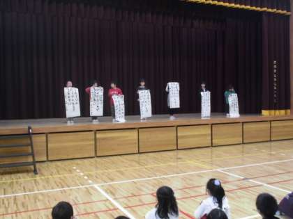 終業式に続いて1年生が俳句の発表をしました。