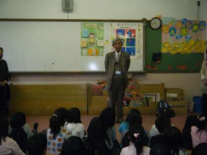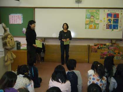 スタッフの先生方から教室での約束ごとをお聞きしました。そして、「教室に来るときには、元気なあいさつをしましょう。」と約束もしました。
