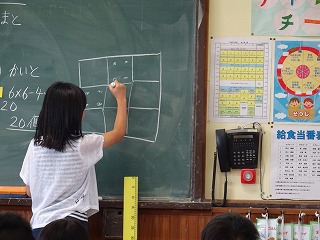 算数「式と計算」では,式の形に着目して,式の表す意味を考えました。図をもとに,式と図を関連付けながら,説明して理解を深めました。