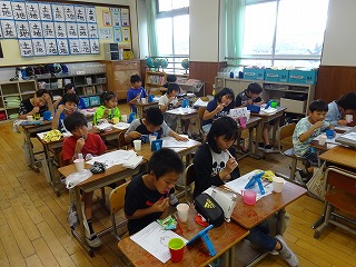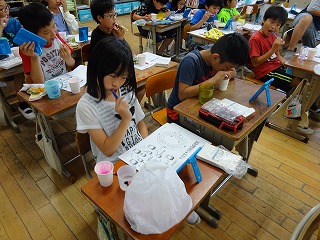 歯磨き指導…染め出しをして,歯の状態を確かめて 5年生