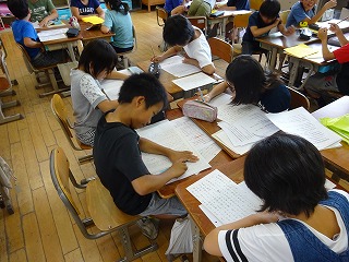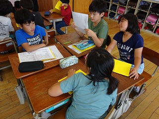 山の家に向けた取組を引き続き進めています。それぞれの係ごとに分担した仕事を同じ係のメンバーと相談したり,原稿を考えたりしながら,見通しをもって活動しています。