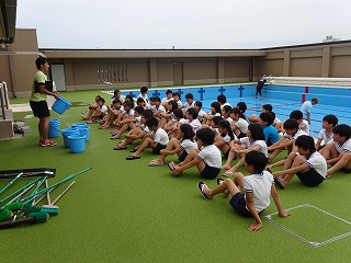 今週末からの低水位の学習を前に,5・6年生合同でプール清掃を行いました。限られた時間の中でしたが,互いに声をかけ合い,一生懸命掃除に取り組み,「さすが高学年」という姿を見せてくれました。