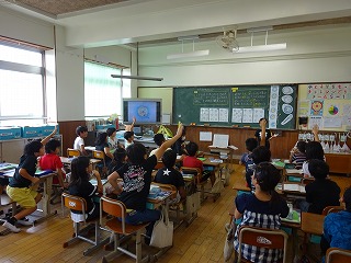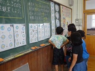 また,休み時間も話し合いが続き,多くの子どもたちが黒板のメダカの画像のところに集まり,議論が続きました。暑い毎日が続いていますが,意欲的に学習に取り組めています。