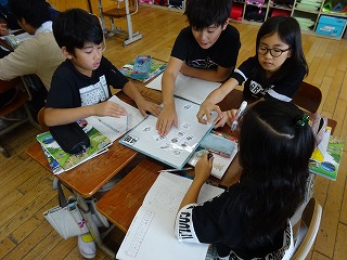 社会では国土についての学習を終えて,食料生産に関わる学習を始めました。初回の学習では,給食の献立に目を向け,その材料を班ごとに理由を交えながら分類しました。
