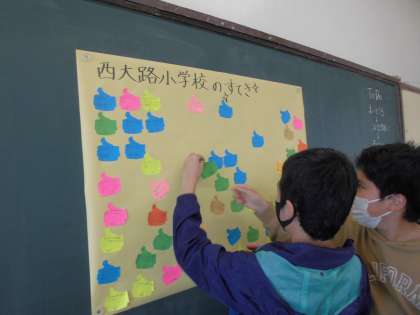 今日は,先週出し合った西大路小学校のよいところをもとに