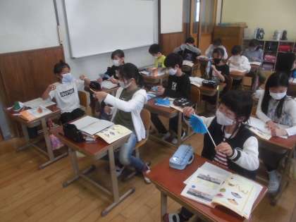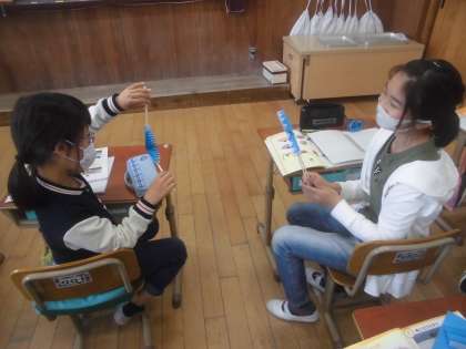 算数科「角とその大きさ」の学習が始まりました。身の周りには,色々な「おうぎ」があることに気付き,実際に「まるく開くおうぎ」を作りました。作ったおうぎを使って,どのような大きさの角ができるのか友達と話し合いました。色々な大きさの角をつくることができ,次の時間も角の大きさをもっと調べていこうとする意欲を高めていました。