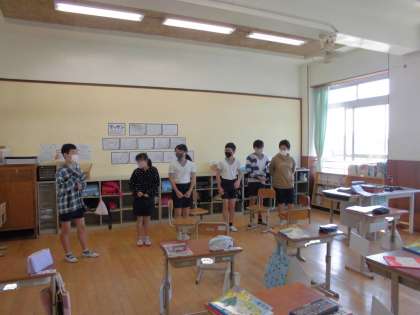 国語の時間にグループで一人一文ずつ文を考えて,一つのお話をつくりました。