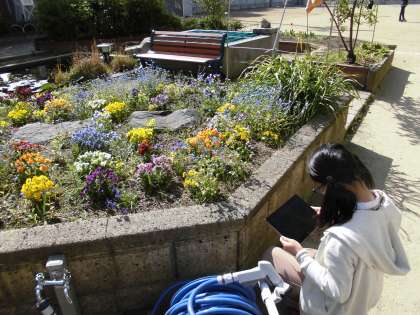 高さや角度を変えて,普段とは違う学校の一面を見つけてました。