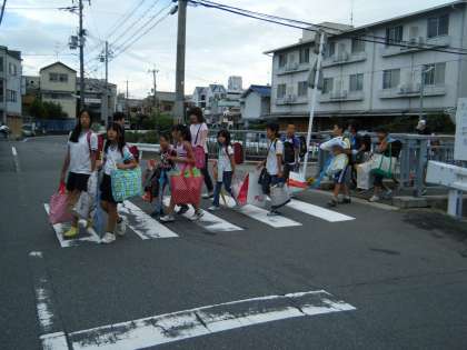 25日、今日から学校が始まりました。朝、みんな大きな荷物を持って登校してきました。