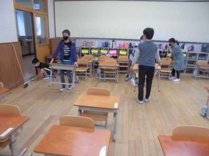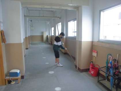 みんなのお手本になれるように,丁寧に清掃活動に取り組んでいます。