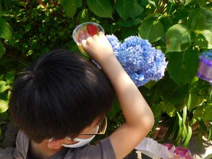 「花にも映っている」「色はまぜられるのかな?」「白い服に模様みたい」