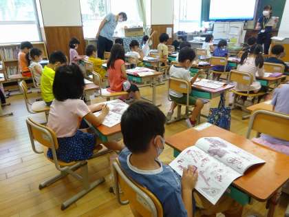 安全ノートを使いながら,自分の命を守るための行動を学び,先生の指示を聞いてみんなで素早く行動できるように確認をしていました。