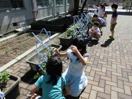 「おおきくなった」の学習に入りました。みんなであさがお探偵になってあさがおのことを詳しく見てカードに観察記録を書きます。みんな,視点を決めて真剣に見ていました。