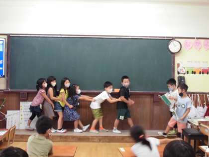 「おおきなかぶ」音読発表会2日目です。今日はなかなかの役者ぞろい。「うんとこしょ,どっこいしょ。」とかぶをひくまねが上手でした。みんな楽しく音読ができましたね。