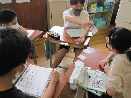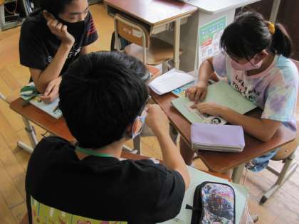 今日の外国語の授業は,夏休みの思い出を尋ね合いました。