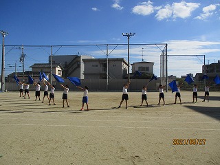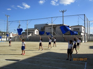 約2週間前からフラッグを持って,本格的に練習をスタートさせました。