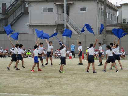 フラッグを使って,心を一つにした表現運動を披露しました。