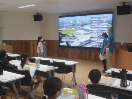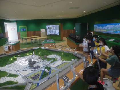 子どもたちの挨拶から始まり,2班に分かれて見学しました。展示室で発電体験をしたり,担当の方から工場内の説明を聞いたりしました。真剣に話を聞きながらメモを一生懸命取っていました。