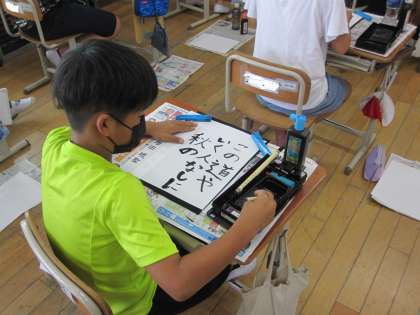今日の書写の授業は,小筆を使って俳句を書きました。