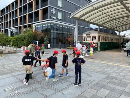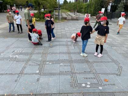 2年生は芝生でゴロゴロしたあと公園探検が始まりました。
