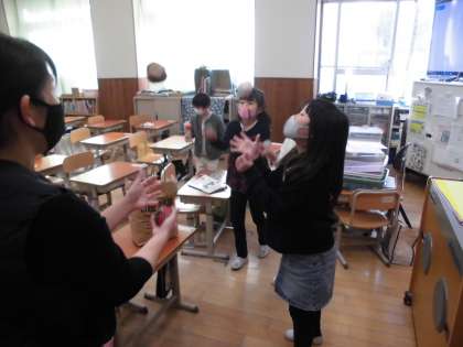 今日は凧あげとお手玉もやってみました。風がよく吹いていたので思いのほか凧がよくあがりました。「初めてやったけど,すごく上がってうれしかった!」と大満足でした。お手玉も上手にできるようになったと,大喜びでした。いつの時代も伝統あそびは子供たちにとって楽しいものですね。