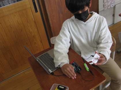 今日は,GIGA端末を使って明かりを付けるプログラムを作りました。