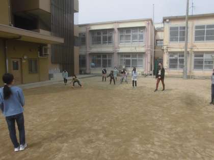今日は,いつもより暖かくよい天気でした。中間休みもみんなで遊び,昼休みはALTも誘ってみんなでドッジボールビーをしました。たくさん動いて体が暑くなり,半そでになっている子もいました。友達と仲良く元気に遊んでいる姿が何よりも嬉しいです。