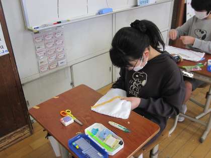 一針一針「ありがとう」の気持ちを込めて,ていねいに縫いました。