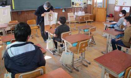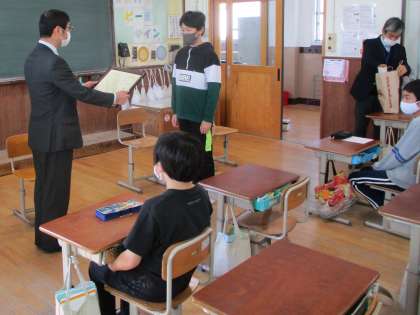 今日はその人権の花運動の委員さん達から,感謝状をいただきました。子ども達は水仙を育てる時に気を付けたことや,がんばったこと等を話しました。最後に委員の方から人権についてのお話をしていただきました。