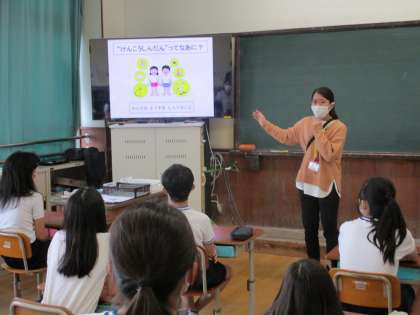 今日は,身体計測がありました。身長を測ると5年生の時よりも背が伸び,子どもたちは自分の成長に喜びを感じていました。その後に養護教諭から健康診断のことや正しい座り方などについて話がありました。教わったことをもとにして,引き続きよい姿勢で学習に取り組んでいきましょう。