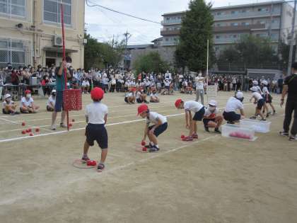 玉入れもよーく狙ってかごに向けて投げていました。