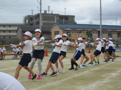 綱引きでは、それぞれ作戦を立てたり並び順を工夫したりと