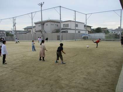 もう一つは「ドッジボール」をして遊んでいました。子どもたちには、人気の遊びなのでどの学年も本気になって楽しそうに遊んでいました。