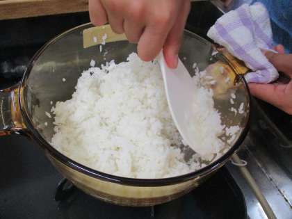 ご飯を炊く際には、米がご飯に変化する様子を観察し、