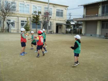 12月15日、体育の学習で、パスゲームに取り組みました。
