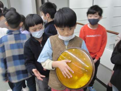 実際に信号機の中を触って,みんな興味津々で学習していました。