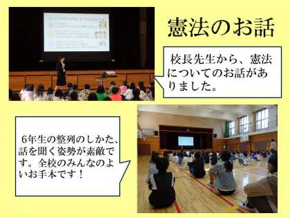 5月1日(月)に、朝会を行いました。5月は憲法月間です。