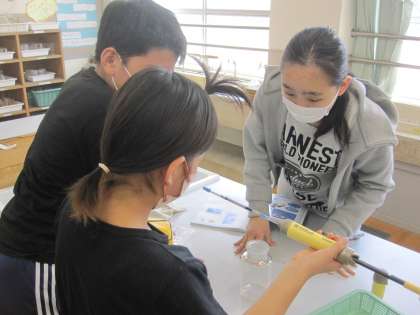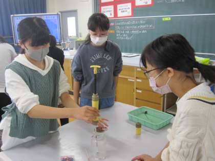 酸素や二酸化炭素の量がどのように変化するか実験しました。