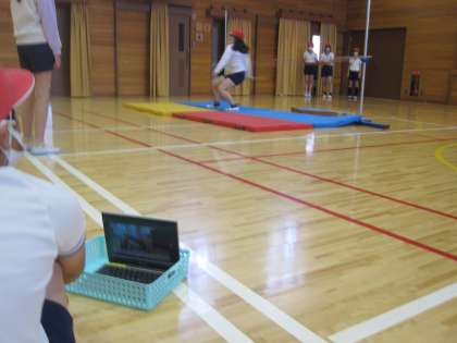 今日は、GIGA端末で跳ぶ様子を撮影して、