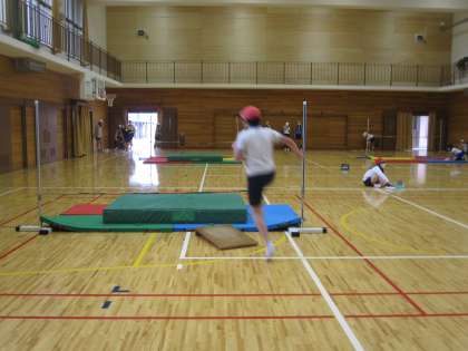 自分の目標の高さが跳べるように、みんなでチャレンジしています。