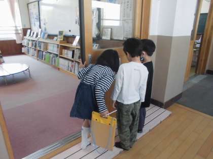 今日は待ちに待った学校探険の日です。2年生は1年生を上手にリードしながら活動していました。