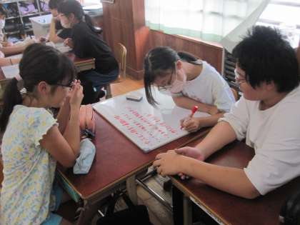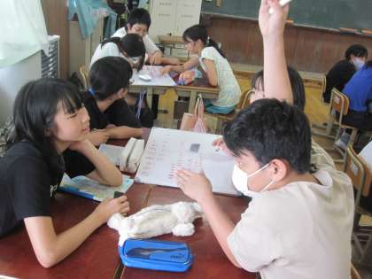 どんなことを大切に演技をしたいかを班で相談しました。